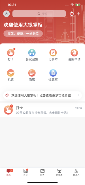 大银掌柜官方版是面向中小微企业提供金融办公管理服务的应用软件,集成多种办公功能,方便多人协同工作,随时交流通讯,及时提醒,支持在线采购、薪资管理、费用报销、申请审批等服务,即时统计分析,高效管理,打造智能化的办公环境。