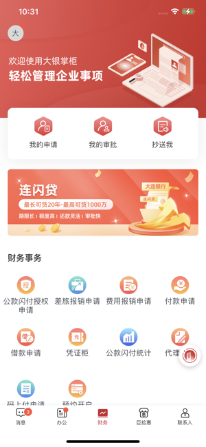 作为大连银行全力打造的产品,大银掌柜app不仅有企业手机银行的金融功能,还提供非金融增值服务,涵盖账户查询、转账汇款、协同办公、费用报销等多方面。这些功能模块让企业在办公和财务管理上更加便捷高效。