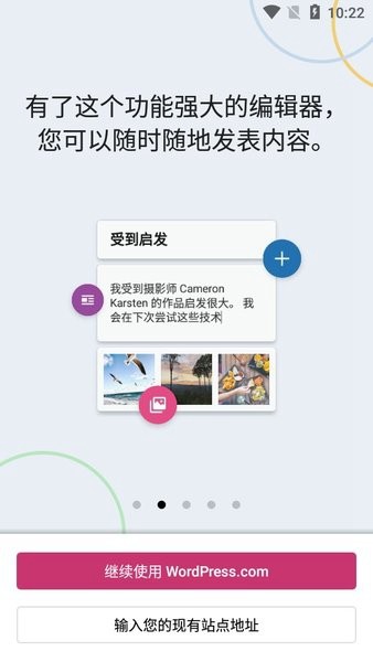 wordpress app是功能强大的网站编辑设计生成器软件,界面简单,内容丰富,可以随时随地发表编辑,自定义设计,关注你喜欢的站点,发现新的阅读内容,通过深入分析观察您的受众增长,轻松管理设置,具备高性能、高安全性特点!