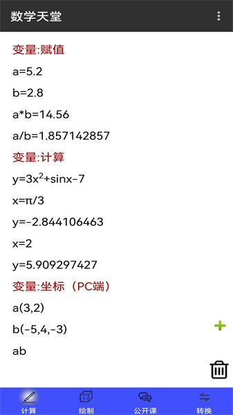 数学天堂是灵树科技公司完全自主研发的一款全球领先的免费高端通用数学计算工具,它充分发挥了移动设备的优势,全面实现了数学领域的数值计算和符号计算功能,极大扩展了计算工具的应用领域,并以其简单易学的操作和强大的计算能力广受用户的喜爱和好评。