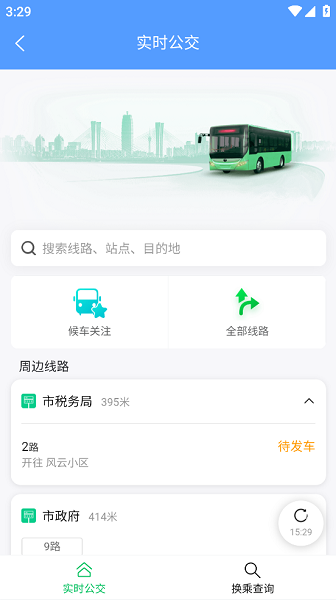 2、当您需要乘坐公交车时,通过公交查询可查看公交车到站信息。