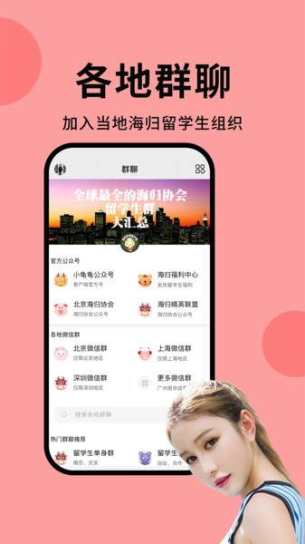2、各地群聊,加入当地海归留学生组织,可以随时去互动