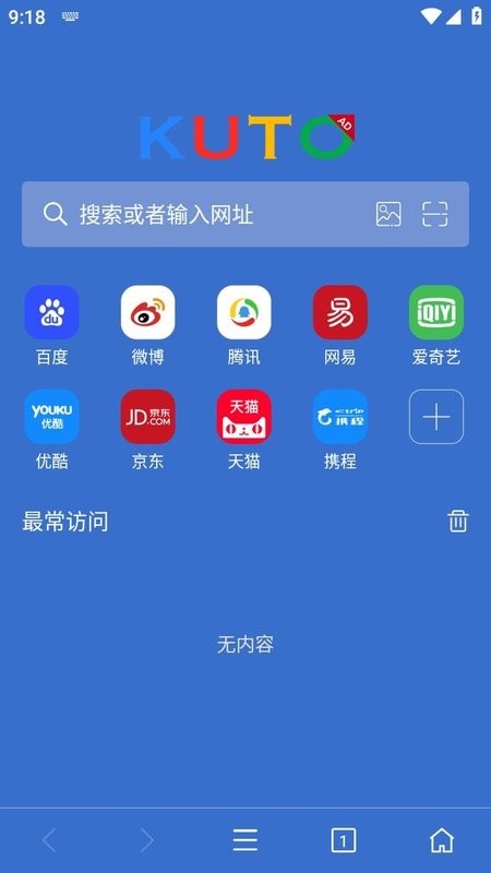 kuto浏览器app是个极简小巧的浏览器工具,内置百度、微博、腾讯、网易、爱奇艺、京东、天猫等应用资源,内容丰富全面,覆盖面广,随你搜索浏览,快速访问,个性化定制,一键添加书签,记录历史,下载文件,更换主题,拦截广告,方便使用!