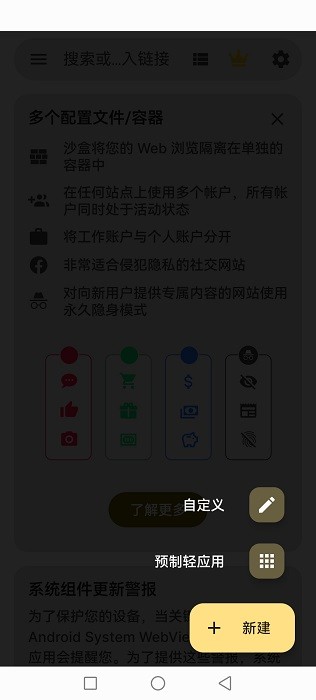 hermit手机版是一款轻应用工具,体积比较小巧,界面布局清晰简单,提供多个配置文件/容器。可以在任何站点上使用多个账户,将工作账户与个人账户分开。对向新用户提供专属内容的网站使用永久隐身模式,可以自由新建轻应用,一键在线编辑,操作简单!
