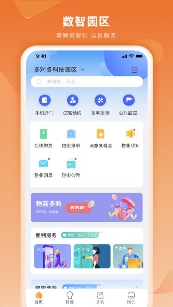 多对多app为用户带来更多的社区服务,让用户享受更加智能的社区生活,软件可以帮助用户随时对小区的智能设备进行查看,还有门禁控制让用户更加的方便,软件之中还有更多的健康服务随时可以体验。