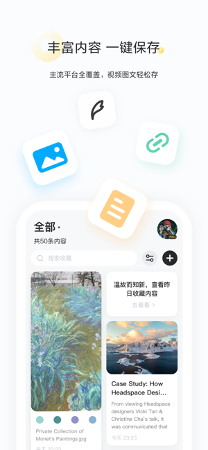 - 全面支持主流内容平台,网页、图文、视频…一键收藏、永久保存;