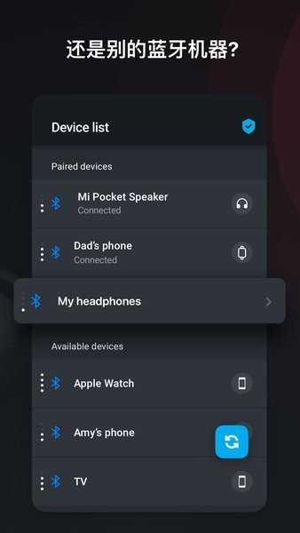使用此蓝牙耳机查找应用来控制您的蓝牙设备。