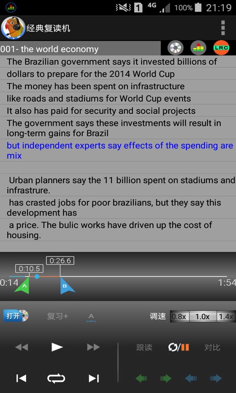 对音频智能断句,开启复读后,直接根据句子确定开始(A)和结束(B)了,AB位置也能调整,满足精准控制的需求