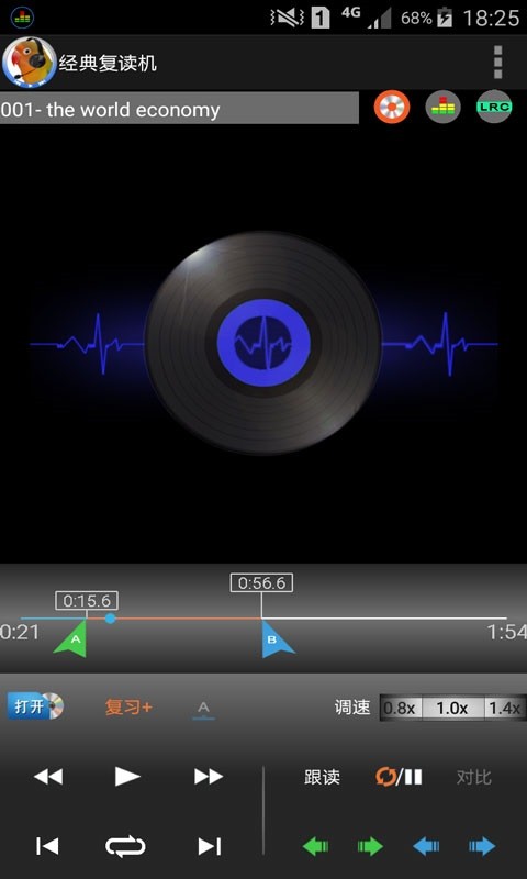 具备传统磁带复读机的复读/暂停、跟读、变速、对比功能。