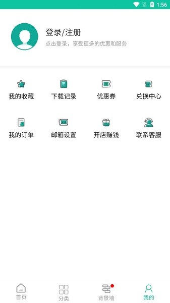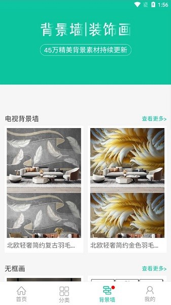 3、返回主界面,点击分类,包含了众多素材的样式;切换到背景墙这里,支持以图搜图。