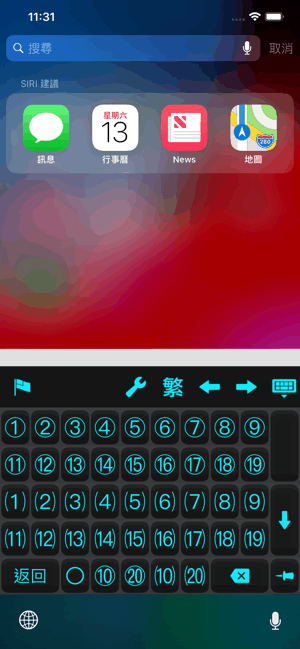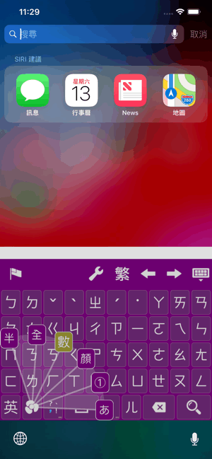 手指可快速的在英文键盘上输入单字,不需完全地按对字母,超注音会自动猜测您想输入的单字。
