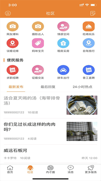 3、租房买房,在社区的租房买房专区中可以看到里面丰富的租房买房资源并及时租买