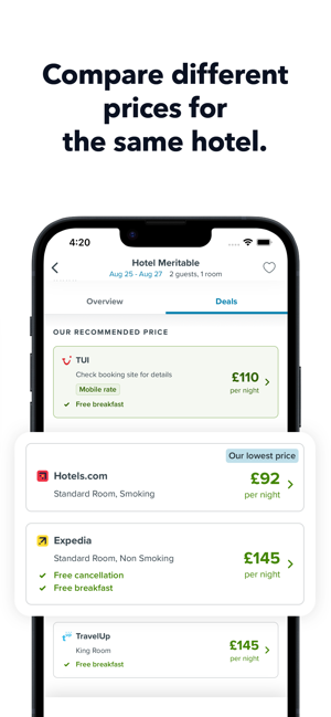 trivago应用程序是从您最喜欢的预订网站搜索和比较酒店价格的简单方法,因此您可以在您想要的位置找到一家酒店或住宿,并提供所需的便利设施,对于这笔交易,您会感到非常满意。