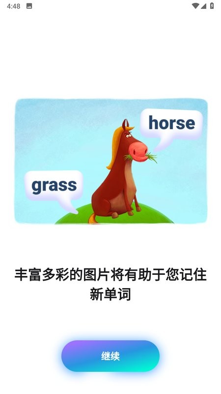 2、我们已经创建了一个容易而清晰的记忆英语单词系统.除了翻译之外,您还可以看到一个特殊的插图,显示未知单词的操作,以及一个文本关联,显示图片中的操作,并允许您创建额外的助记词连接.英语教程简单的组织单词的重复的时间间隔,这是由遗忘艾宾浩斯的曲线计算.有了我们,你的词汇量只会增长!