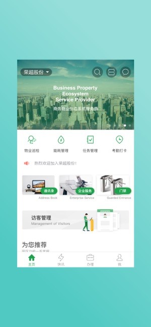 荣超股份官方版是一款针对园区物业生活提供服务的应用平台,主要面向楼宇内的企业及白领,支持物业巡检、耗材管理、任务管理、考勤打卡,提供访客管理、装修办理、物业维修等功能,最新快讯及时浏览了解,楼宇动态第一时间掌握,相关福利不容错过!
