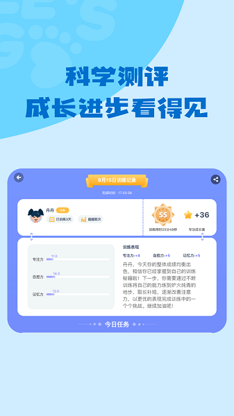 3、成长可见:通过图表和数据展示孩子的训练进度和成果,让家长和孩子都能清晰看到专注力的提升。