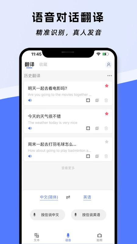 1、支持多种翻译方式,包括拍照翻译和直接输入翻译。