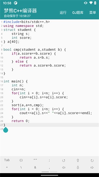 梦熊cpp编译器app是非常好用的一款能够让用户们在手机中进行编程和验证的手机软件,平台上有非常便捷的编程功能能够让用户们快速的进行编程,让用户们能够节省不少的时间,超级的好用。