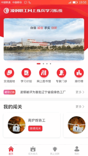 凌钢e家最新版是为凌钢集团旗下职工打造的网上在线培训学习平台,提供交流园地、学习计划、网上图书馆、专家门诊、排行榜功能服务,内容丰富,闯关练兵,实操测试,不断学习提升职业技能,循序渐进,高效掌握,刷新排行榜排名!