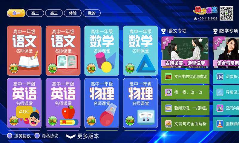 高中同步课堂教学app软件适合高中生来进行在线学习,就打科目全面覆盖,可以在线查看详细的课程教学视频,能根据年级和科目来选择性的学习,能进行专项训练,巩固课堂知识,是预习复习的好帮手,学生自主学习超方便!