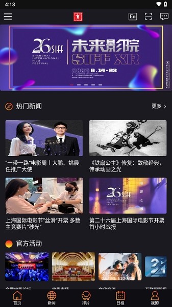 siff app是上海国际电影节官方app,主要提供电影节相关活动,推送更新热门视频,了解上海国际电影节概况信息,掌握实时新闻动态,还有电影节影片排片表和日程安排查看,一键关注,展映各类电影,参与艺术文化交流,推动国际电影作品行业发展!