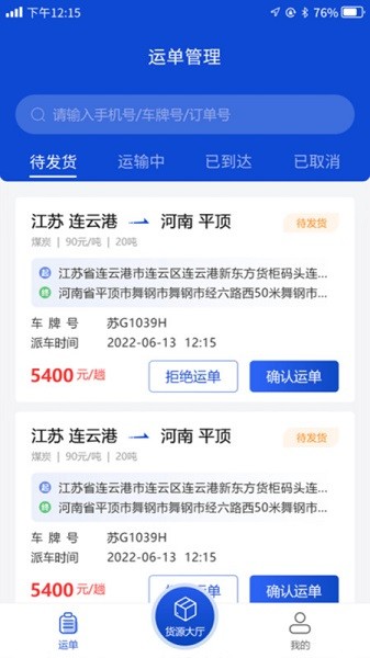 -- 货源超多,满足司机们的接单需要,还可以随时进行运单管理