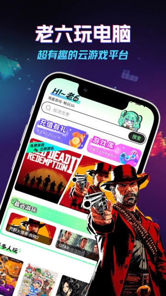 老六玩电脑最新版是掌上云电脑云游戏平台,涵盖丰富的游戏库资源,随你自由搜索查询,免费体验,充值有礼,无需下载即可畅玩各类3A大作,运行稳定,不卡顿,无需更新,还内置虚拟按键,手机轻松玩电脑游戏,操作简单,一键设置管理!
