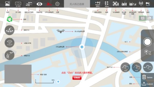 手机当中无绘制飞行器飞行的轨迹,开始起飞时便会按照这个方向和轨迹前行。