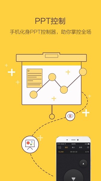 7、用手机操作PPT,上下滑动即可翻页或者返回,还可模拟激光笔投射到屏幕上。