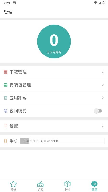 功能也很贴心,比如一键安装、一键卸载,还有懒人更新,特别适合像我这种懒得折腾手机的人。另外还支持夜间模式,晚上用的话眼睛不疲劳。