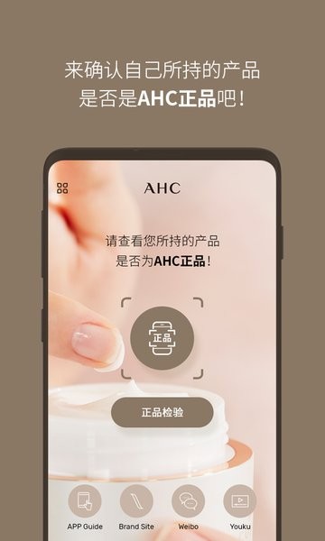 ahc官网查询防伪软件又称ahc正品验证app,是可以用于ahc防伪码真假鉴别的扫一扫软件。想知道你使用的韩国ahc护肤品是真的吗?那就赶快用这个app进行测试吧!扫码即可查看产品认证。