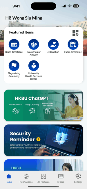 hkbu mobile官方版是香港浸会大学官方校园服务平台,实时更新最新消息动态,面向本校师生、教职工人员使用。可以查看校历,查询课表和成绩信息,还提供考勤、体育设施预定、校园地图、教务管理、校园活动等服务,带来一站式便利校园体验!
