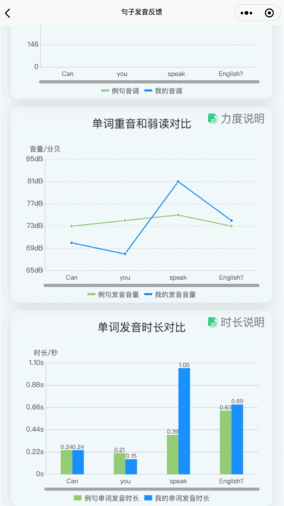 本软件也可以分析您单词的发音,会提醒您哪些音读的不准,单词重音是否读错。
