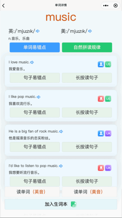 我觉得这个app最大的亮点是它的自然拼读功能,把发音规律融入单词记忆中,让背单词变得轻松有趣。另外,软件还能纠正单词和口语发音的错误,并提供英式和美式两种口音选择,满足不同需求。特别是它的易错点查询功能,在考试前特别有用。