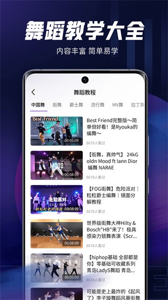 舞蹈教学视频app是非常好用的一款能够让用户们找到超多专业的舞蹈教学视频的手机平台,在这里用户们能够快速的找到各种风格的舞蹈教学视频进行跟学跟练,让自己能够更好的找到适合自己的舞蹈。