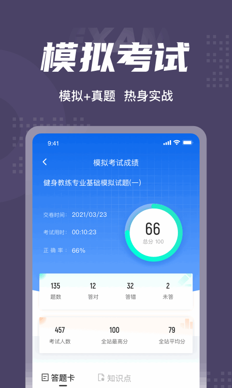 健身教练资格证考试聚题库包含了健身教练考试热点、难点和常考点的考试模拟题库,更有历年真题及模拟试题题型,题库中的试题全真模拟真实的考试,是各位考生学习乃至通过考试的好帮手。
