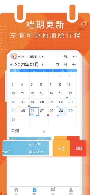 有档期APP是一款集商务合作与时间管理工具为一体的互联网商务平台。团队协作,多人同时记录行程排期、同步更新,数据云端存储高效便捷、永久记录、安全稳定,完美处理档期行程混乱、预约排期不同步等问题。
