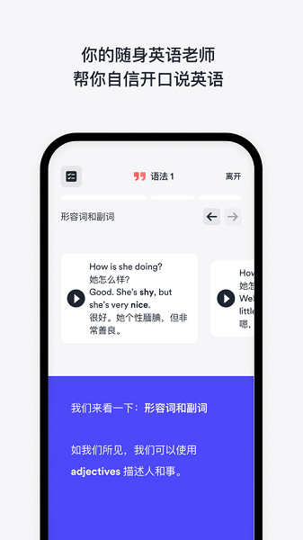 由专家开发的聊天机器人使用机器学习技术,并不断提升改进。随时随地,和 AI一起学英语吧。错题智能讲解:智能教练针对你的错误答案提供实时讲解,帮你从错误中吸取教训,更快进步。