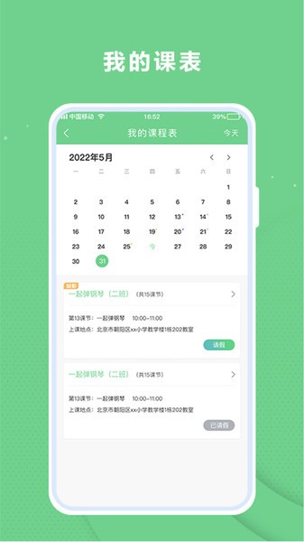 如果孩子有事不能参加课程,通过软件就可以轻松地提交请假申请,以后请假就会更方便