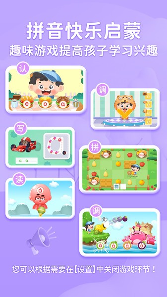 淘淘爱拼音一款儿童拼音启蒙软件。内容开发遵循《汉语拼音方案》规则,根据义务教育语文课程标准编写,针对学拼音的儿童,采用学玩结合模式贯穿全程,全方位提高儿童学拼音时的感受。用儿歌、图像、游戏、测试等多种形式,激发孩子对拼音的学习兴趣,提升孩子的专注力、训练语言的模仿能力、增强记忆力等综合能力,为后期语文识字及阅读打下坚实的基础。