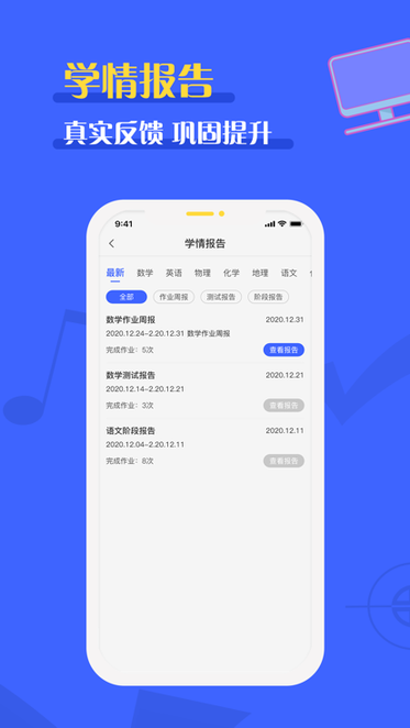 2、在线了解学习情况,学生可以通过软件查看自己的学习进度和学习情况,及时了解自己的学习状态和改进学习方法。