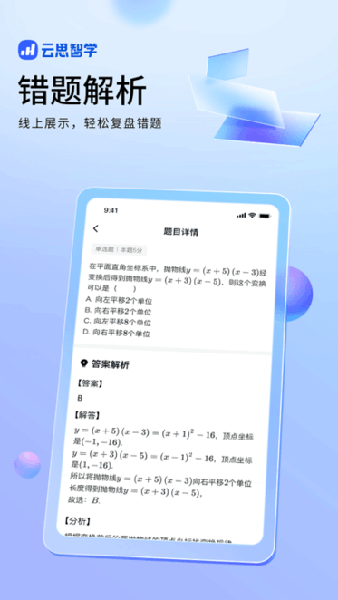 云思智学家长端APP是一款专门面向家长的,助力学生学习的效率提升的产品,包含学情和错题本,支持自动收录学情和错题,对错题进行多维度分类,轻松复盘错题,从而帮助家长了解学生学习情况,找准提升目标。