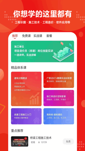 涵盖施工、造价、招投标、资料、BIM方向课程;