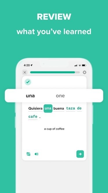 Speakly 使用间隔重复以最有效的方式将新学到的信息推送到您的长期记忆中。这可确保您记住所学的一切。