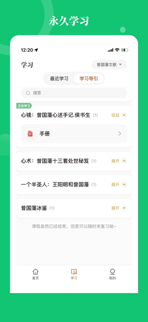 界面设计清新简洁,操作简单易上手。它能自动记录你最近的学习内容,方便下次继续。同时,app提供了海量精美的图片和视频资源,让用户更直观地了解传统文化。