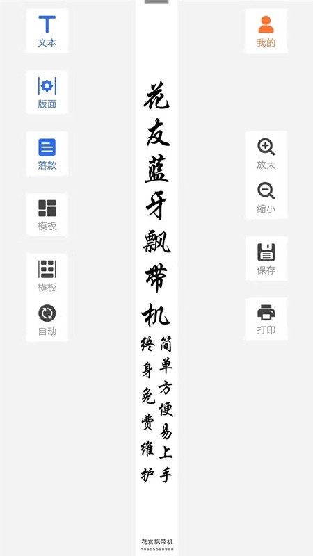 -- 手机版飘带挽联打印机专用APP,自动排版,自动花边,自动落款,内置模板,快速连接,极速打印。