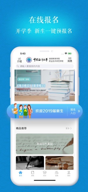 中国海洋大学继续教育学院多年秉持“精技强能,成就职业英才;来学往教,力行终身教育”的核心理念奋斗在成人教育的最前线。随着互联网的发展,教育行业发生了翻天覆地的变化,教育形式人性化、教育内容多样化是目前发展的主要目标。所以我们推出了海大继续教育移动端app。
