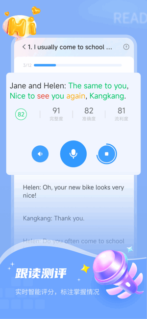 同步主流教材英语课本句子,多种模式学习,实时智能评分,标注掌握情况,个性化支持跟读方式。巩固单元知识,模仿标准的发音习惯,帮助形成语感。多种形式的同步词汇趣味练习和单词听写,快速有效掌握单词。