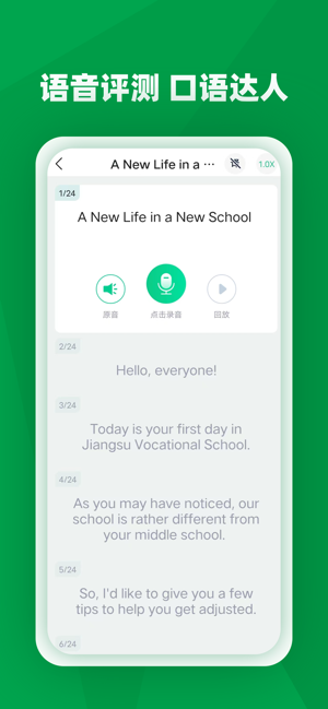 3、支持语音评测,锻炼培养大家的听力、口语等多方面的能力,操作简单