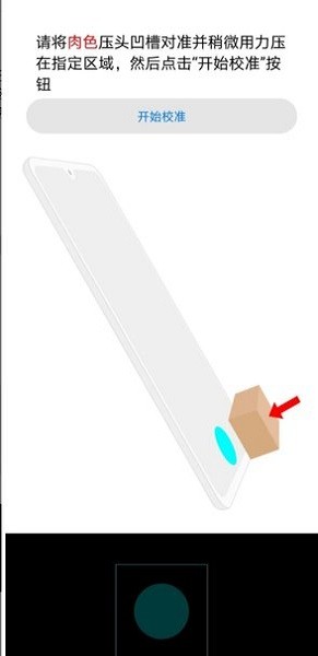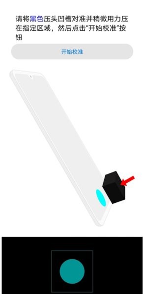 2、请将黑色压头凹槽对准并稍微用力压在指定区域,然后点击“开始校准”按钮